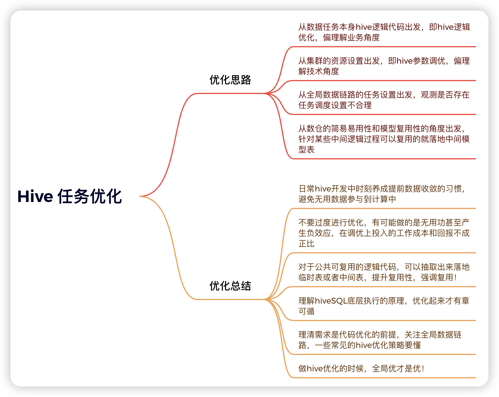 - HiveQL逻辑优化:从数据任务本身的SQL逻辑出发,结合业务理解,进行代码层面的优化。